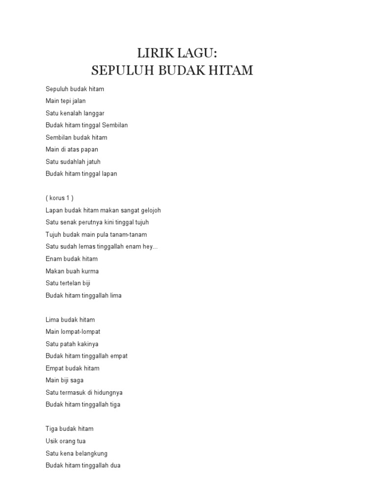 Lagu 10 Budak Hitam Pdf